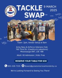 April 11 @ 10:00 am - 1:00 pm at 1 Port St E, Mississauga, ON L5G 4N1Tackle Swap Event – March 2026
